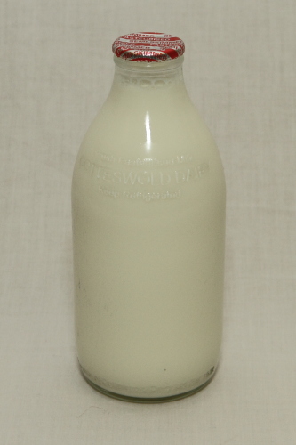 Cotteswold Dairy Fresh milk is sourced from local, family farms that are Red Tractor Assured and practice traditional farming methods. This naturally creamy whole milk is a great source of calcium for a balanced diet and is delived in a traditional foil top glass bottle. Our glass bottles are returnable and reuable and can be reused on average 30 times before being recycled and remade into new glass bottles, so it is a great way to reduce your plastic waste and carbon footprint.